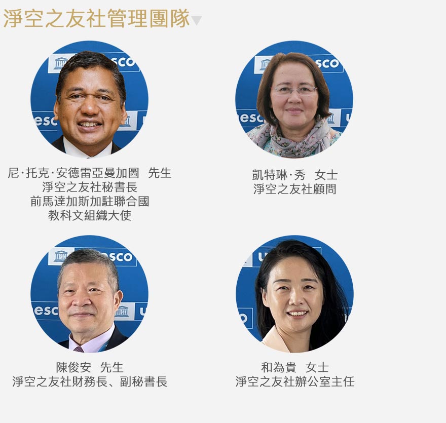 教科文組織的大使們為了支持老法師所倡導的「促進宗教團結、恢復宗教教育、弘揚傳統文化」的教育理念,並讓這個理念在教科文組織內弘揚與推廣,進而傳播、落實於世界更多的地方,於二〇一七年七月,提出為老法師成立多元宗教辦公室的提議。經過教科文組織審查核准,定名為「聯合國教科文組織 淨空之友社」(Association of Master Chin Kung’s Friends at UNESCO)。