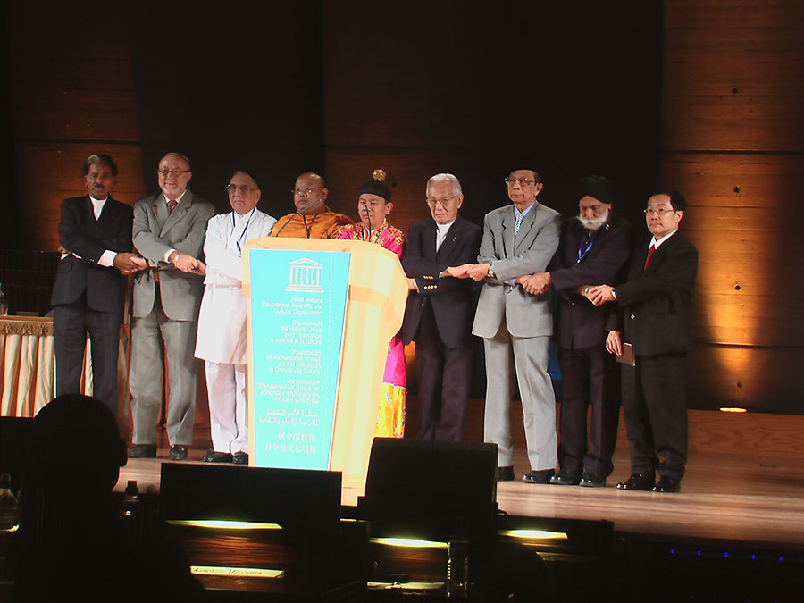 尊敬的泰國大使,尊敬的九大宗教的代表,世界佛教的學人,法國佛教會的會長,來自世界各地的專家學者、法師,諸位女士們、先生們。今天的大會,由於我們開幕的時間晚了一點,我們的講演比較上長,好在都印出來了,我想大家都拿到了。現在大概有半個小時的時間,我想趁這個機會跟大家談談我學佛的經過。