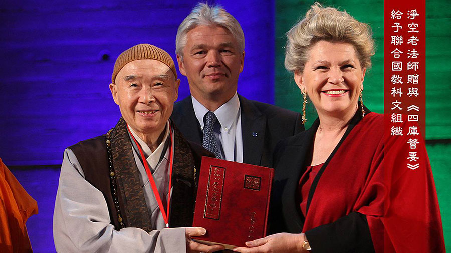 尊敬的聯合國教科文組織大會主席,尊敬的斯里蘭卡國會議長,尊敬的日本前首相鳩山閣下,諸位大使,諸位嘉賓,淨空今天有這個殊勝的緣分,不能不感謝教科文組織善意邀請。我很榮幸,第二次來到巴黎教科文組織總部與諸位同仁交流、分享。