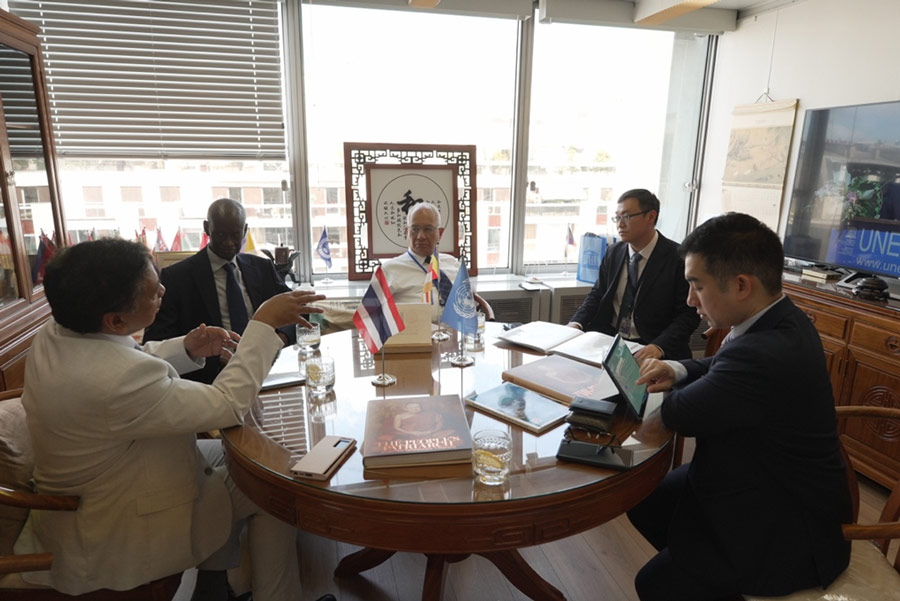 此外,帕洛普會長還會見了泰國副大使Supranee Khamyuang,雙方討論了和平大會的籌備工作。會長強調,WFB教科文辦公室不僅致力於弘揚佛法,還致力於促進不同信仰人群的共同福祉。