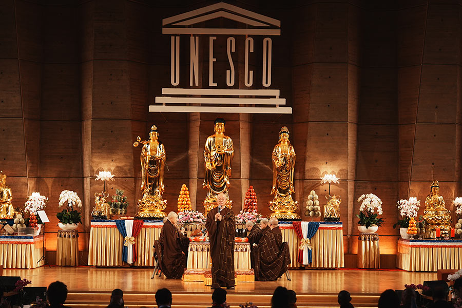 二〇二六年三月八日在法國巴黎聯合國教科文組織總部一號會議廳,隆重舉行孝親報恩三時繫念法會。本次活動,以「百年淨空・地球母親・天下母親世界和平大會」為主題,由馬達加斯加駐聯合國教科文組織代表團、世界佛教徒聯合會、淨空之友社、淨宗學院以及世界各地淨宗學會共同舉辦,吸引來自不同國家和地區近八百位嘉賓齊聚一堂。