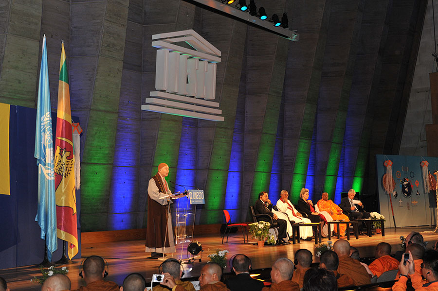 尊敬的聯合國教科文組織大會主席,尊敬的斯里蘭卡國會議長,尊敬的日本前首相鳩山閣下,諸位大使,諸位嘉賓,淨空今天有這個殊勝的緣分,不能不感謝教科文組織善意邀請。我很榮幸,第二次來到巴黎教科文組織總部與諸位同仁交流、分享。